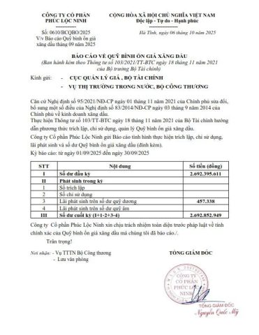 Báo cáo định kỳ Quỹ bình ổn giá xăng dầu (BOG) – tháng 09/2025