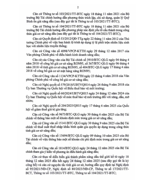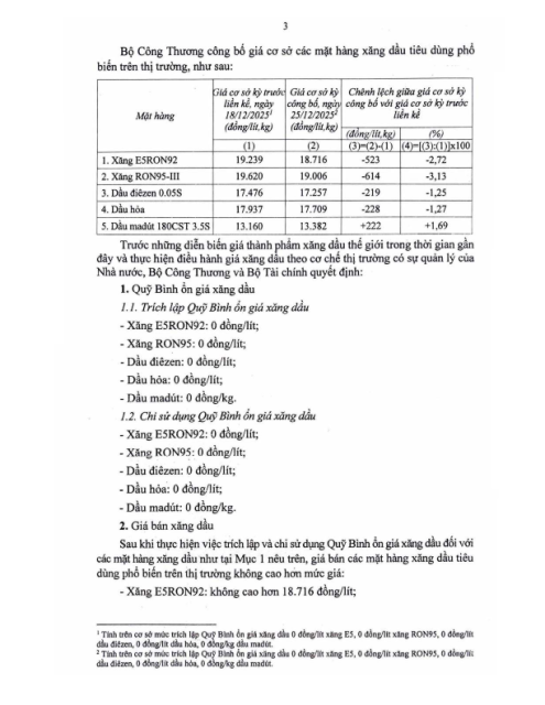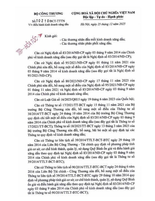 Văn bản số 10210/BCT-TTTN ngày 25.12.2025 về điều hành kinh doanh xăng dầu