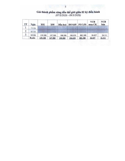 PhuclocninhPetrol Điều chỉnh giá xăng dầu từ 22 giờ 00 phút ngày 12.03.2026