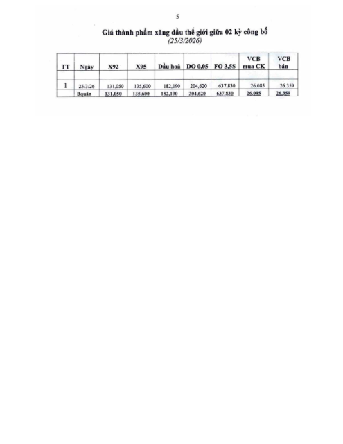 PhuclocninhPetrol Điều chỉnh giá xăng dầu từ 08 giờ 15 phút ngày 25.03.2026