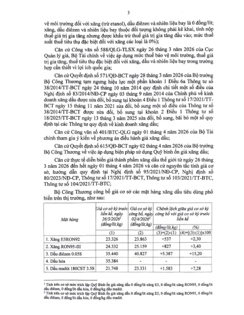Văn bản số 2058/BCT-TTTN ngày 26.03.2026 về điều hành kinh doanh xăng dầu