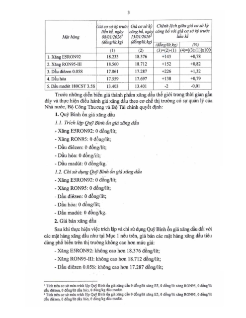 PhuclocninhPetrol Điều chỉnh giá xăng dầu từ 15 giờ 00 phút ngày 22.01.2026