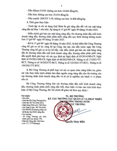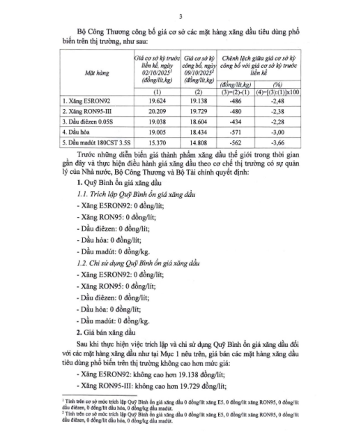 Văn bản số 7538/BCT-TTTN ngày 02.10.2025 về điều hành kinh doanh xăng dầu