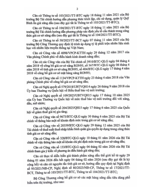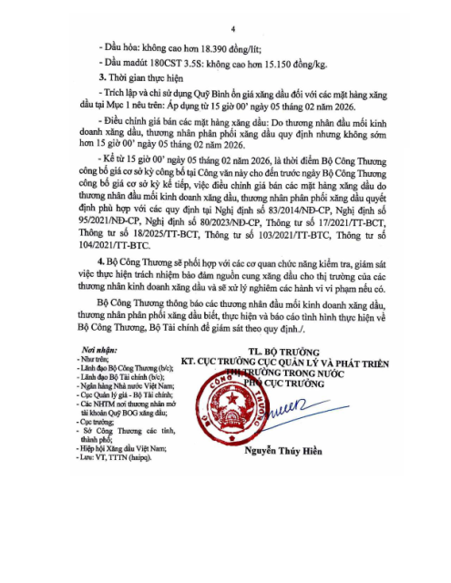 Văn bản số 797/BCT-TTTN ngày 05.02.2026 về điều hành kinh doanh xăng dầu