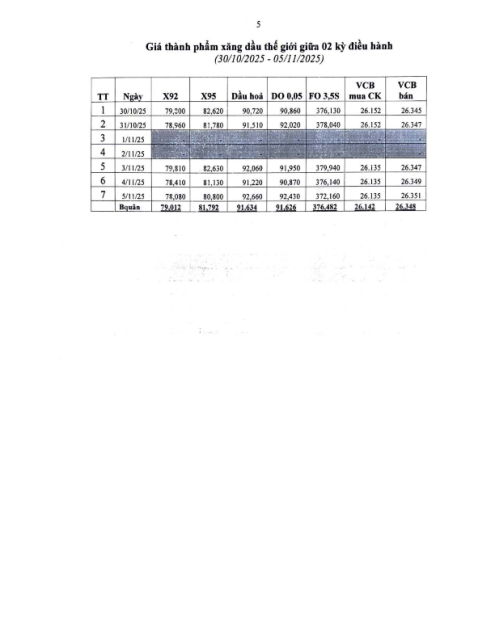 Văn bản số 9398/BCT-TTTN ngày 27.11.2025 về điều hành kinh doanh xăng dầu